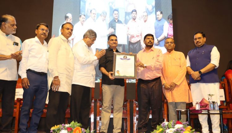 पहिला भारतरत्न डॉ. बाबासाहेब आंबेडकर समर्पण पुरस्कार केंद्रीय राज्यमंत्री रामदास आठवले आणि पालकमंत्री चंद्रकांत पाटील यांच्या हस्ते सयाजी शिंदे यांना प्रदान