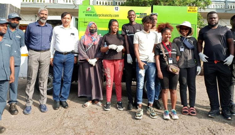 Pune (Voice News Service): Cutting across nationalities and giving a message of Environment Protection, students of Association of African Students in India ( Pune Chapter ) joined hands with Adar Poonawalla Clean City Initiative (APCCI) in a cleanliness drive recently near Baba Bhide Bridge. The activity is significant as it comes at a time when efforts are being made to enhance cooperation among the G20 nations under India’s G20 Presidency aiming to develop sustainable solutions for environment protection. . Malhar Karwande, COO APCCI and Sathya Natarajan, Lead Volunteer APCCI, led this initiative along with various volunteers and students. The students opined that plastic is a global problem and joint efforts are required to address the issue.