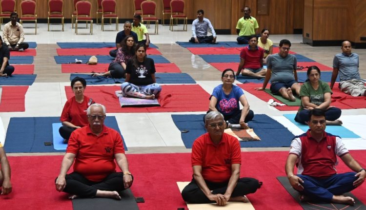 Pune (Voice news service):- Royal Connaught Boat Club (RCBC) organized a special program to mark International Yoga Day, the theme of the event was Yoga for Humanity. The program was led by Founder of Jal Dindi Pratishthan and Hon. Secretary RCBC Dr. Vishwas Yewale with yogasanas and meditation. Officials and members of RCBC participated in the program. This activity got a spontaneous response from everyone.