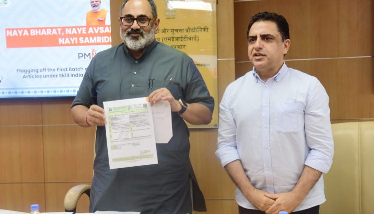 Union Minister of State for Skill Development and Entrepreneurshipand Electronics and IT, Shri Rajeev Chandrasekhar today flagged off the first batch of Namda Art products for exportto the United Kingdom (UK).