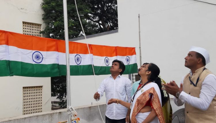 भारतमातेच्या प्रतिमाचे पुजन करत मान्यवरांच्या हस्ते ध्वजारोहण करण्यात आले.