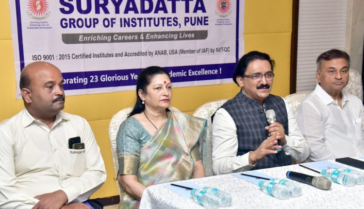 पुणे : सूर्यदत्त एज्युकेशन फाउंडेशन संचालित सूर्यदत्त ग्रुप ऑफ इन्स्टिट्यूट्समध्ये बार कौन्सिल ऑफ इंडियाच्या मान्यतेने व सावित्रीबाई फुले पुणे विद्यापीठाच्या संल्गनतेने विधी (लॉ) अभ्यासक्रम, तर महाराष्ट्र शासनाच्या मान्यतेने महाराष्ट्र राज्य तंत्रशिक्षण परिषद आणि डॉ. बाबासाहेब आंबेडकर तंत्रशिक्षण विद्यापीठाच्या (बाटू) संलग्नतेने औषधनिर्माणशास्त्र (फार्मसी) अभ्यासक्रम यंदापासून सुरु झाले आहेत. विधी महाविद्यालयात इनक्युबेशन, तर फार्मसी महाविद्यालयात संशोधन व विकास केंद्र (आर अँड डी) स्थापन करणार आहोत, अशी माहिती सूर्यदत्त एज्युकेशन फाउंडेशनचे संस्थापक अध्यक्ष प्रा. डॉ. संजय बी. चोरडिया यांनी पत्रकार परिषदेत दिली. प्रसंगी ‘सूर्यदत्त’च्या उपाध्यक्षा सुषमा चोरडिया, महासंचालक प्रा. डॉ. शैलेश कुलकर्णी, संचालक प्रशांत पितालिया उपस्थित होते. काळाची गरज ओळखून शिक्षण पूर्ण होताच स्वतःचा उद्योगधंदा किंवा प्रॅक्टिस सुरु करता येईल, अशा स्वरूपाचे प्रशिक्षण विद्यार्थ्यांना पहिल्या वर्षापासून उपलब्ध करून दिले जाणार आहे, असे प्रा. डॉ. संजय बी. चोरडिया म्हणाले.