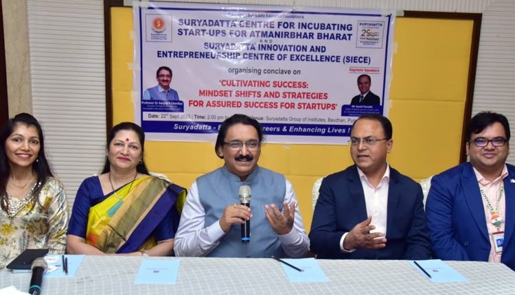 पुणे : “आत्मनिर्भर भारताचे स्वप्न साकार करायचे असेल, तर स्टार्टअप्स यशस्वी व्हायला हवेत. त्यासाठी आर्थिक गुंतवणुकीच्या बरोबरीने विविध समस्यांची सोडवणूक आणि आव्हाने पेलण्यासाठी सक्षम मानसिकता असणे गरजेचे आहे. त्यामुळे सूक्ष्म नियोजन, सकारात्मक व धोरणी मानसिकता, पर्यायी मार्गांचा अवलंब करा,” असा सल्ला इंटरनेशनल सक्सेस कोच व माइंड पावर एक्सपर्ट सुनील पारेख, ‘सूर्यदत्त’चे संस्थापक अध्यक्ष प्रा. डॉ. संजय बी. चोरडिया यांनी दिला. शिक्षण, उद्योग, सामाजिक, आरोग्य आदी क्षेत्रांतील ४० वर्षांचा अनुभव असलेल्या प्रा. डॉ. संजय बी. चोरडिया यांच्या संकल्पनेतून हा उपक्रम राबविण्यात येणार आहे.