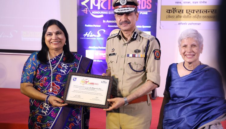 Pune (Voice news service):- Hon. Dr. Bhagyashree Patil was honored with the esteemed “Shakti Award” in a spectacular ceremony at the Pune Police Commissioner’s Excellence Center. This recognition in the field of healthcare and medicine was presented to her by the Pune Police Commissioner, Retesh Kumaarr, and Chief Guest Hon. Ms. Anu Aga, ex MP and chairperson of Thermax. On the occasion of Navratri, 94.3 Fever FM Pune has taken the initiative to highlight the Extra Ordi-Naaris of Pune with the SHAKTI AWARDS. The event also celebrated our brave Women Police Officers. In partnership with Pune Police, 94.3 Fever FM Pune felicitated these extraordinary women who stand as the protective shield of our society.
