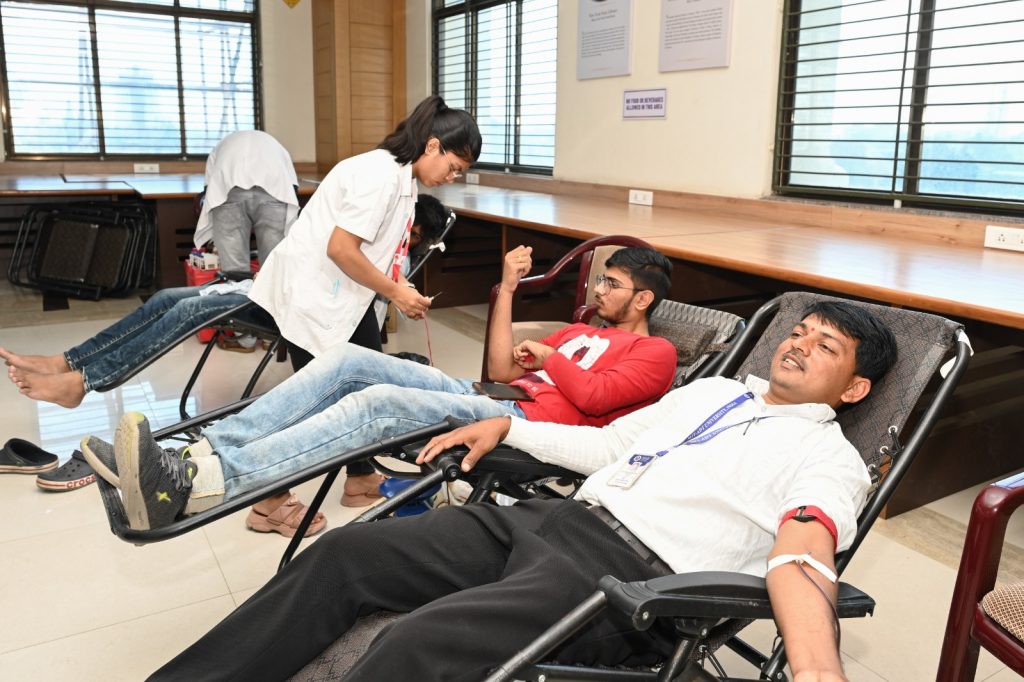 पुणेः एमआयटी आर्ट डिझाईन आणि टेक्नाॅलाॅजी विद्यापीठ, विश्वराजबाग, पुणेच्या राष्ट्रीय सेवा योजना विभागाच्या वतीने शहर परिसरात फैलावलेल्या डेंग्यू या आजाराच्या तीव्रतेमुळे रुग्णालयांत वाढत असलेल्या रक्त आणि रक्तपेशींचा तुटवडा लक्षात घेता नुकतेच भव्य रक्तदान शिबिर आयोजित करण्यात आले होते. आपल्या विविध सामाजिक उपक्रमांच्या आयोजनातून समाजाला कायमच सकारात्मक संदेश देणाऱ्या एमआयटी एडीटी विद्यापीठाने पुन्हा एकदा समाजाची गरज ओळखून रक्तदात्यांना साद घातली अन् त्याला अतिशय उत्तम प्रतिसाद मिळाला.