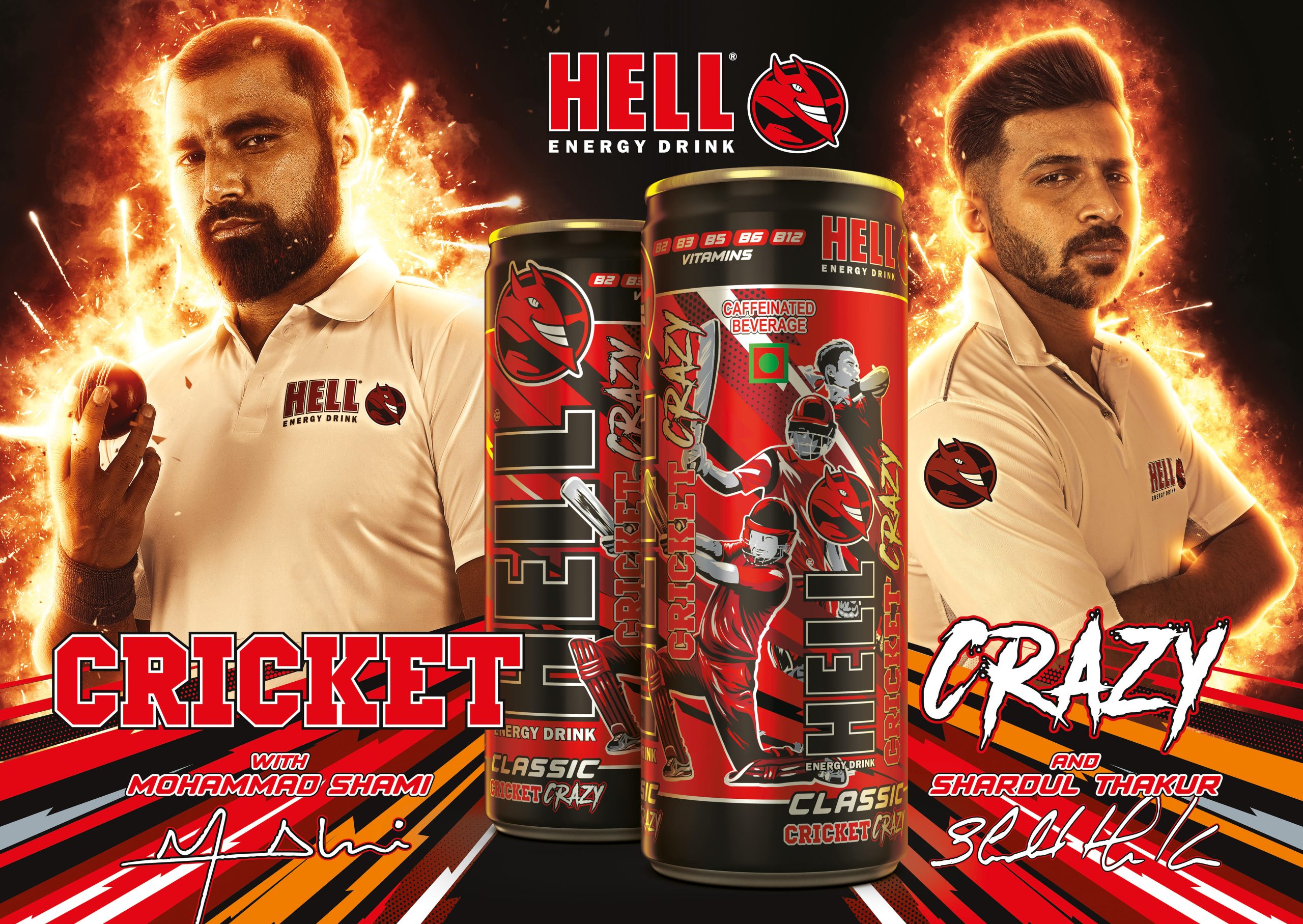 As the Indian Team inches towards the most awaited moment, fans have an opportunity to pick up a HELL Cricket Crazy Can while cheering for Team India which can give them an opportunity for a meet and greet with Shardul Thakur and Mohammad Shami. Additionally consumers can also win signed merchandise and signed HELL ENERGY CANS!!