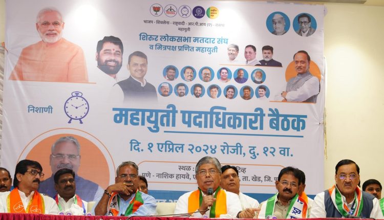 यावेळी चंद्रकांत पाटील म्हणाले की, देशभरातल्या ५७२ लोकसभेच्या जागांना एक कल्स्टर प्रमुख अशी विभागणी केली आहे. महाराष्ट्रातल्या ४८ जागांसाठी १६ जणांची नियुक्ती करण्यात आली आहे. काल या निवडणुकीच्या पार्श्वभूमीवर १६ प्रभारी जणांची एक संयुक्त बैठक पार पडली. त्या क्लस्टर प्रमुखांनी त्यांच्या अंतर्गत येणाऱ्या तीन लोकसभातील महायुतीतील २० पक्षांच्या नेत्यांची मोट बांधायची, संवाद निर्माण करायचा असं ठरवण्यात आलं. पंधरा दिवसापुर्वी बारामती लोकसभेची बैठक पार पडली. त्यानंतर पुणे लोकसभेकरीता विधानसभानिहाय बैठक केली. त्यानंतर आता शिरूर लोकसभेसाठी बैठक पार पडली. यामध्ये सर्व महायुतीच्या नेत्यांची ताकद लावावी, सगळे रूसवे फुगवे दुर व्हावे यासाठी ही बैठक आयोजित करण्यात आल्याचे चंद्रकांत पाटील यांनी सांगितले.