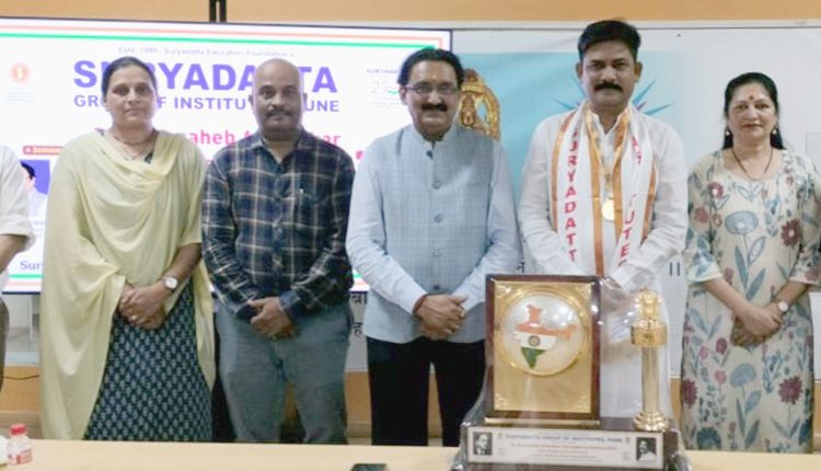 Meghraj Rajebhosale accepted the award and expressed his gratitude towards the Suryadatta Group. He mentioned that the Suryadatta has contributed a lot in the education field along with different activities that shaped the society. Thousands of students have been educated from the institutes and today they have been doing a good career in their respective fields. We have to work for the unprivileged people of society.