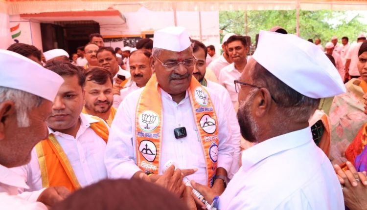 शिरुर : महायुतीचे शिरुर लोकसभेचे अधिकृत उमेदवार शिवाजीराव आढळराव पाटील यांच्या प्रचारार्थ शिरुर तालुक्यातील टाकळी हाजी पंचायत समिती गणामध्ये गावभेट दौऱ्याचे आयोजन केले होते. यावेळी काठापुर,पिंपरखेड,चांडोह, फाकटे, जांबूत, शरदवाडी, वडनेर, माळवाडी, आमदाबाद अशा गावांत आढळराव पाटील यांच्यावर जेसीबीतून पुष्पवृष्टि करुन तसेच ढोल-ताश्या व फटाके फोडून जंगी स्वागत करण्यात आले. यावेळी बोलताना आढळराव पाटील म्हणाले की, “ही