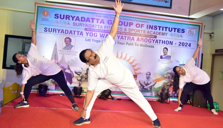 Pune: The Suryadatta Group of Institutes Pune has organized the ‘Suryadatta Yogawari Arogyathon-2024’ on the occasion of the tenth International Yoga Day. A large number of students and teachers participated for two consecutive hours from 10 am to 12 am and danced on various types of yoga and religious songs. This unique initiative, which raises awareness about the Pandharpur pilgrimage, various religious journeys, and physical and mental health, has been recorded in the India Star World Records.