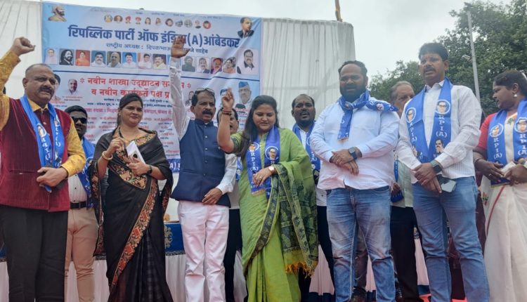 पुणे – रिपब्लिकन पार्टी ऑफ इंडिया (A) आंबेडकर गटात राष्ट्रीय अध्यक्ष दिपकभाऊ निकाळजे यांच्या मार्गदर्शनाखाली शेकडो कार्यकर्त्यांनी जाहीर प्रवेश केला. दांडेकर पूल येथील मांगीरबाबा चौकात हा कार्यक्रम पार पडला. शिखर वाहतूक संघटनेचे अध्यक्ष डॉ. एन.जी. पांडुळे यांच्या नेतृत्वाखाली २२० हुन अधिक कार्यकर्त्यांनी पक्ष प्रवेश केला. राज्य महिला उपाध्यक्ष प्रियदर्शनीताई निकाळजे यांच्याहस्ते महिलांचा पक्षप्रवेश तसेच जिल्हाध्यक्ष सचिन खरात, शहरप्रमुख अशोक जगताप यांच्या हस्ते मांगीरबाबा चौकातील शाखेचे उद्घाटन करण्यात आले. यावेळी ऍड. राजाभाऊ सोनावणे, रवी क्षीरसागर, ईश्वर ढोले, रविराज चव्हाण, गौतम सुरडकर राजाभाऊ धिमधिमे, अनिल गायकवाड, गौतम सुरडकर उपस्थित होते. अण्णासाहेब बंडगर, असिफ पटेल, अजय मखरे, लीलाताई कांबळे यांच्यासह अनेकांनी पक्षप्रवेश केला.
