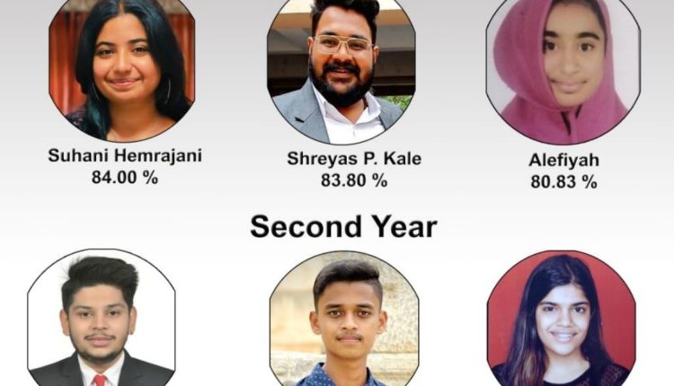 In the first year of the diploma course, Suhani Hemrajani (84%), Shreyas Kale (83.80%), and Alefiya (80.83%) secured the top three positions. In the second year, Ayush Pokarna (85.30%), Prem Bhintade (76.70%), and Diya Kothari (74%) achieved the first, second, and third ranks, respectively. Founder President Prof. Dr. Sanjay B. Chordia, Vice President and Secretary Sushma Chordia, and Principal Ajit Shinde congratulated all the meritorious students.