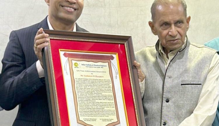 Pune: Yashwant Gharpure, former Managing Director of Hindustan Antibiotics, was honored with the ‘Life Achievement Award’ by the Indian Institute of Chemical Engineers (IIChE) Regional Centre. Over the past seven decades, Gharpure has contributed significantly to management, chemical engineering, and social work. In recognition of his contributions, Gharpure was presented the Life Achievement Award by Prashant Girbane, Director General of the Maratha Chamber of Commerce, Industries, and Agriculture (MCCIA).