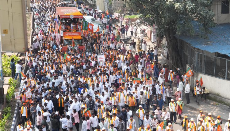 पुणे : महायुतीचे अधिकृत उमेदवार म्हणून काल राज्याचे उच्च व तंत्रशिक्षण मंत्री ‘चंद्रकांत पाटील’ यांनी कोथरूड मतदारसंघातून उमेदवारी अर्ज दाखल केला. चंद्रकांत पाटील यांना पाठिंबा देण्यासाठी हजारो कोथरूडकरांनी काल पुण्याच्या रत्यावर अलोट गर्दी केली. यावेळी केंद्रीय राज्यमंत्री मुरलीधर मोहोळ, खासदार मेधा कुलकर्णी, भाजपा नेते सी.टी.रवीजी यांंच्यासह अनेक महायुतीचे नेते उपस्थित होते. यंदा पण कोथरूडकर मला मोठ्या मताधिक्क्याने निवडून देतील, असा विश्वास त्यांनी व्यक्त केला.