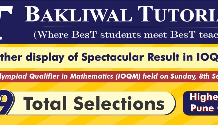 पुणे: गणित विषयातील भारतीय ऑलिम्पियाड पात्रता स्पर्धेत पुणे शहरातून बाकलीवाल ट्यूटोरियल्सचे सर्वात जास्त विद्यार्थ्यांनी यश मिळवत वर्चस्व निर्माण केले आहे. नुकत्याच झालेल्या IOQM 2024 पहिल्या टप्प्यातील निकालांमध्ये उल्लेखनीय कामगिरी केली. एकूण 59 विद्यार्थी दुसऱ्या टप्प्यातील RMO 2024 चाचणीसाठी पात्र ठरले आहेत. त्यामुळे ऑलिम्पियाड पात्रता स्पर्धेचा विचार केल्यास, बाकलीवाल ट्युटोरियल्स (बीटी) हे महाराष्ट्रातील निःसंशयपणे सर्वोत्कृष्ट आहे. RMO चाचणी रविवार, 3 नोव्हेंबर रोजी नियोजित आहे. RMO चाचणीचा कालावधी 3 तास असेल, 6 प्रश्न असतील आणि प्रत्येक प्रश्नासाठी तपशीलवार पुरावा लिहावा लागेल.