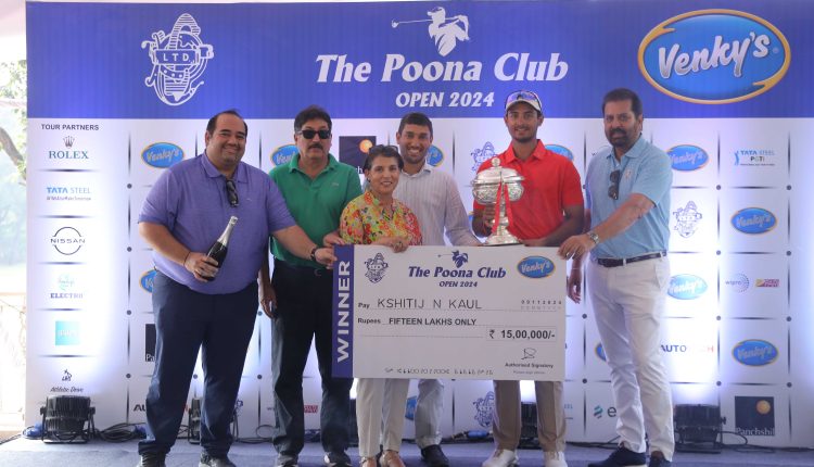 Pune (Voice news service):- Delhi’s Kshitij Naveed Kaul fired a cool and confident four-under 67 in the last round highlighted by a dramatic final hole birdie to emerge wire-to-wire champion at a total of 20-under 264 at The Poona Club Open, an INR 1 crore event, played at the Poona Club Golf Course in Pune.