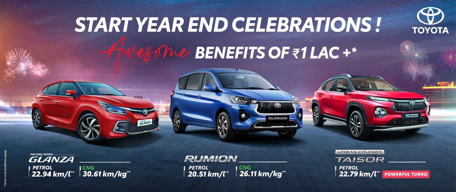 Apart from Special Limited Edition, Toyota is offering exclusive year end offers above Rs 1 Lac in Toyota Glanza, Urban Cruiser Taisor & Urban Cruiser Hyryder (Except CNG models). Awesome consumer benefits will continue up till 31st Dec 2024