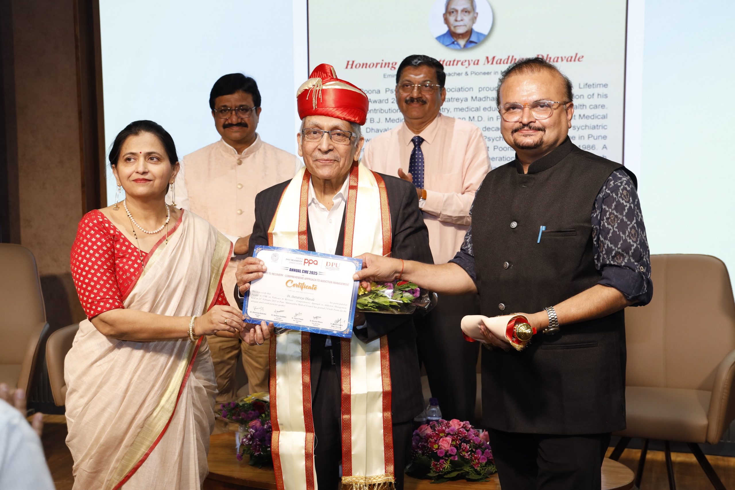 As part of the CME, the Pune Psychiatrists’ Association Lifetime Achievement Award was presented to Dr. Dattatreya Dhavale, a Consultant Psychiatrist with 50 years of experience, recognized for his transformative impact on patients and their families. Along with that, the Pune Psychiatrists’ Association honored Mrs. Mukta Puntambekar, Director of Muktangan Rehabilitation Centre, Pune with the PPA Oration Award 2025.