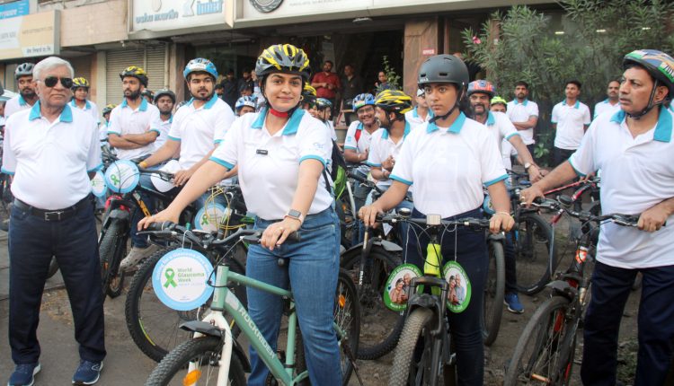 Pune: To mark World Glaucoma Week, Moolani’s Eye Care Center in Pune organized a cycling rally to raise awareness about glaucoma. The rally was flagged off by Aruna Katara, President of Hope Foundation and Research Center, Senior Police Inspector Ashok Kadam, and Senior Ophthalmologist Dr. Ashok Moolani.