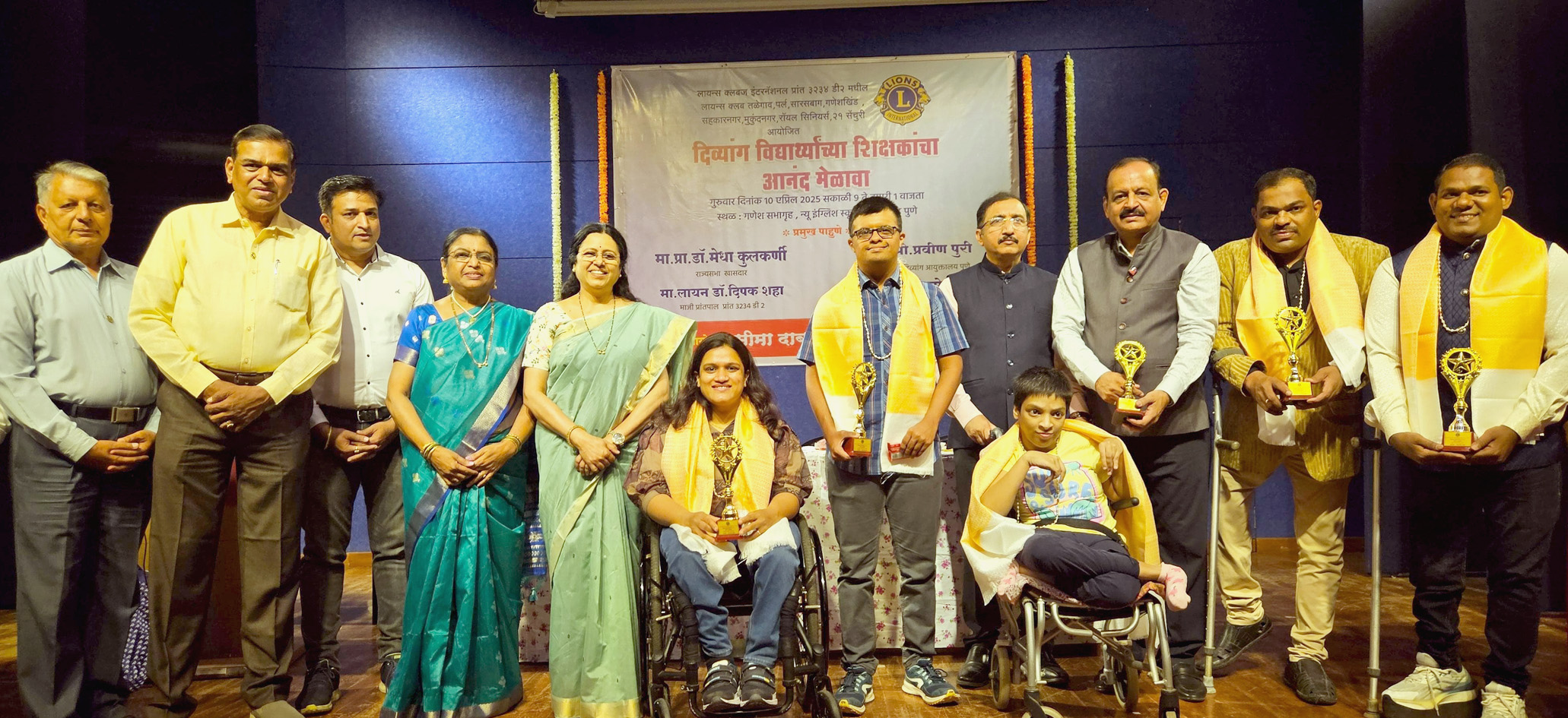 She was speaking at a felicitation ceremony for teachers of differently-abled students, organized by Lions Clubs International through the initiative of social worker Seema Dabke. The event was held at the Ganesh Auditorium of New English School on Tilak Road. Commissioner for the Welfare of the Disabled Praveen Puri, former Lions District Governors Dr. Deepak Shah, Ramesh Shah, Sachin Nahar, and event coordinator Seema Dabke were present at the program. The event also featured a special session by laughter yoga trainer Makarand Tillu.