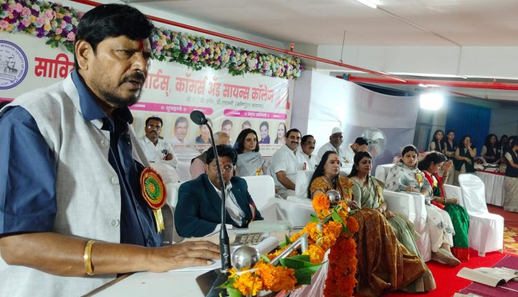 रामदास आठवले पुढे बोलताना म्हणाले, की सावित्रीबाई फुले महाविद्यालयाची चांगली इमारत पाहून छान वाटले. एम.डी. शेवाळे यांची उणीव भासत आहे. भविष्यात हा वटवृक्ष आणखी मोठा व्हावा, ही अपेक्षा आहे. विठ्ठल रामजी शिंदे हे चळवळींशी नाते जोडलेले थोर समाजसुधारक होते. अस्पृश्य वर्गाची शिक्षणाची गरज ओळखून त्यांनी नाना पेठेत अहिल्याश्रम सुरू केले. त्यातून या मुलांना शिक्षण दिले. आतंकवाद्यांचा नायनाट करण्यासाठी आपले सैनिक सज्ज आहेत. आधुनिक युगात शिक्षणासाठीही लढाई करणे गरजेचे बनले आहे. विद्यार्थ्यांनी चांगला अभ्यास करून आई-वडील, गावाचे नाव मोठे करावे.