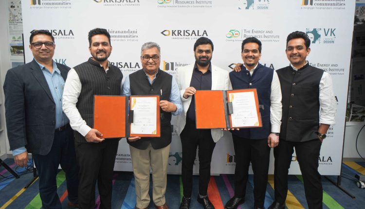 Pune: In a major step toward reimagining urban living through sustainability, Hiranandani Communities and Krisala Developers have signed a strategic Memorandum of Understanding (MoU) with The Energy and Resources Institute (TERI), onboarding the organization as a knowledge partner for their flagship 105-acre integrated township in North Hinjewadi, Pune.