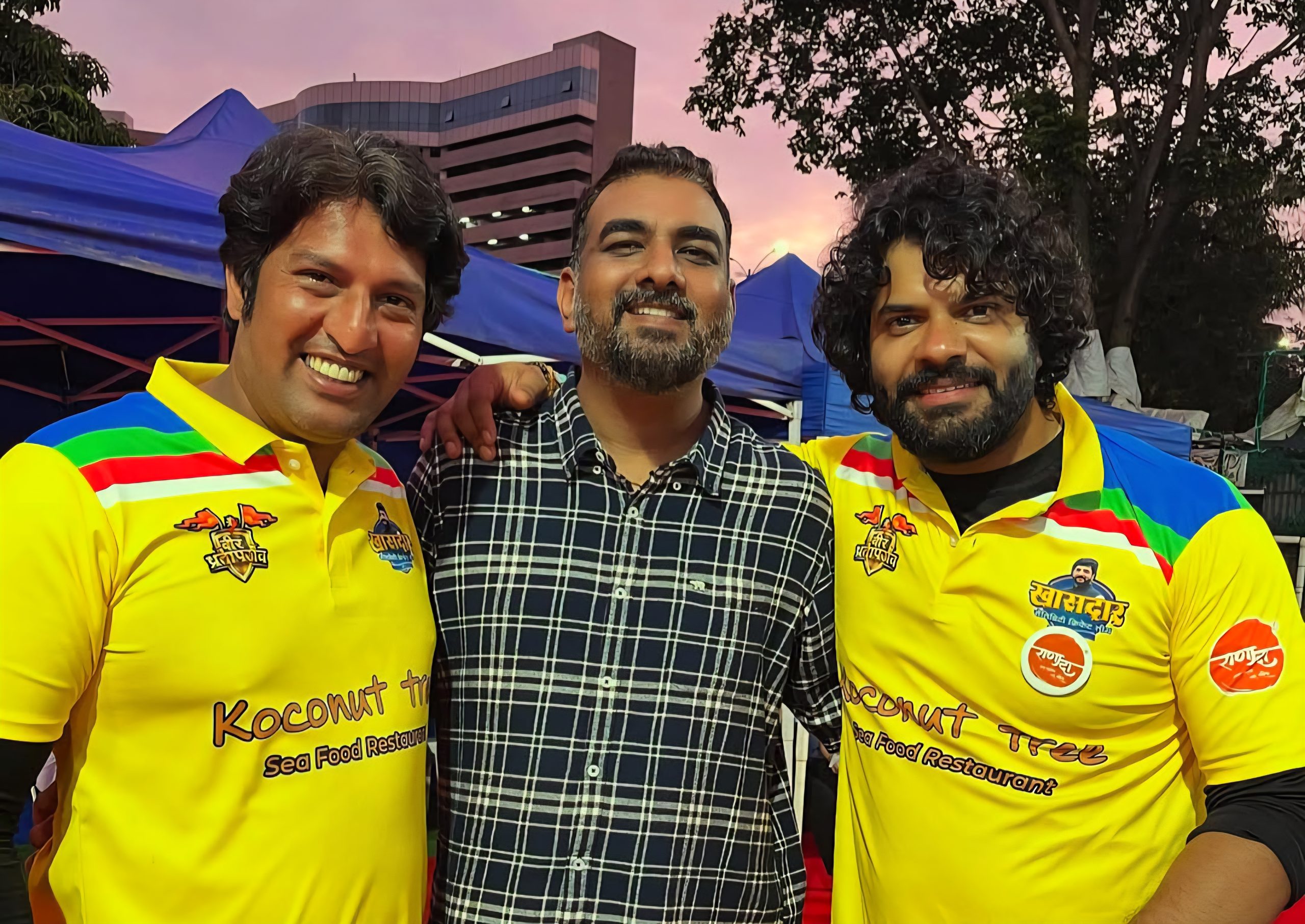 ही पोस्ट पुण्यात सुरू असलेल्या खासदार प्रीमियर लीगच्या नेते विरुद्ध अभिनेते या स्पर्धात्मक क्रिकेट सामन्याच्या दरम्यानची असून, याच निमित्ताने हार्दिक जोशी आणि चेतन चावडासोबतचा फोटो अमोल करंबे यांनी शेअर केला आहे.