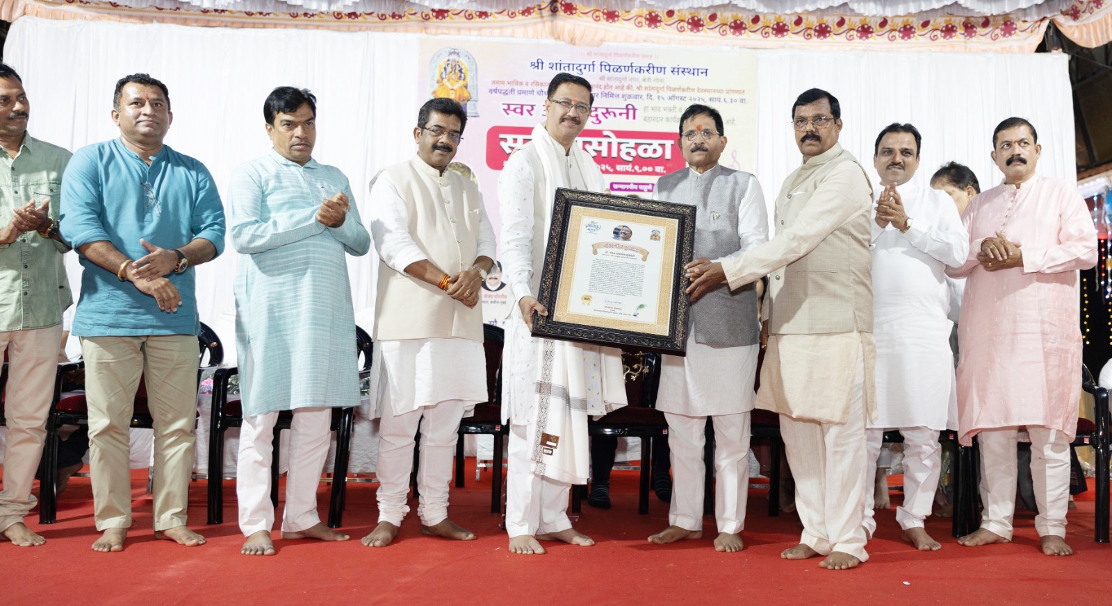 गोवा येथील श्री शांतादुर्गा मंदिर येथे झालेल्या समारंभाला राज्यसभा खासदार सदानंद शेट तानावडे, साळगाव विधानसभा मतदारसंघाचे आमदार केदार नाईक, भाजप गोवा प्रदेशाध्यक्ष दामोदर नाईक, लालबाग सार्वजनिक गणेशोत्सव मंडळाचे अध्यक्ष बाळासाहेब कांबळे, संस्थेचे अध्यक्ष शीतल चोडणकर तसेच पदाधिकारी व गोवेकर मोठ्या संख्येने उपस्थित होते.