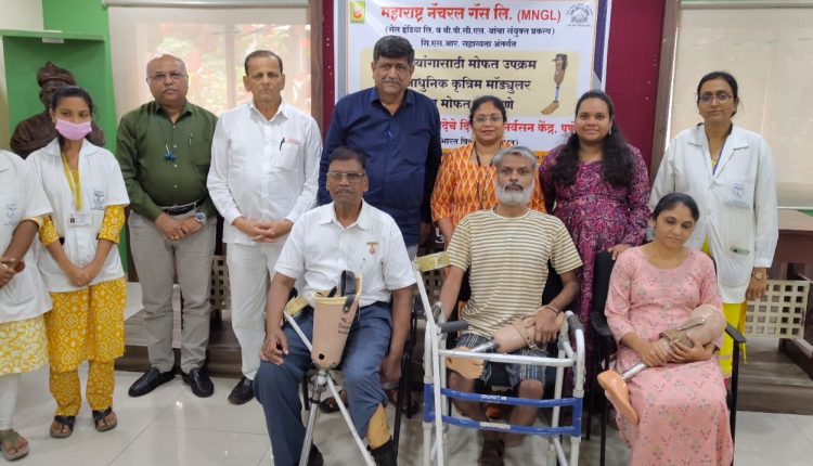 पुणे – भारत विकास परिषदेचे पुणे येथे कायमस्वरूपी दिव्यांग केंद्र कार्यरत असून येत्या वर्षात सुमारे बाराशे दिव्यांगांना महानगर नैसर्गिक वायू लिमिटेडच्या (एमएनजीएल) भरीव आर्थिक सहकार्यातून आधुनिक कृत्रिम पाय मोफत देण्याचा उपक्रम सुरू करीत असल्याची घोषणा परिषदेच्या दिव्यांग पुनर्वसन केंद्राचे प्रमुख विनय खटावकर यांनी केली. यावेळी परिषदेचे राष्ट्रीय उपाध्यक्ष दत्ता चितळे व महानगर गॅसच्या ऋतुजा पायगुडे उपस्थित होत्या. प्रातिनिधिक स्वरूपात काही दिव्यांगाना कृत्रिम पाय देण्यात येऊन या उपक्रमाचा शुभारंभ यावेळी करण्यात आला.
