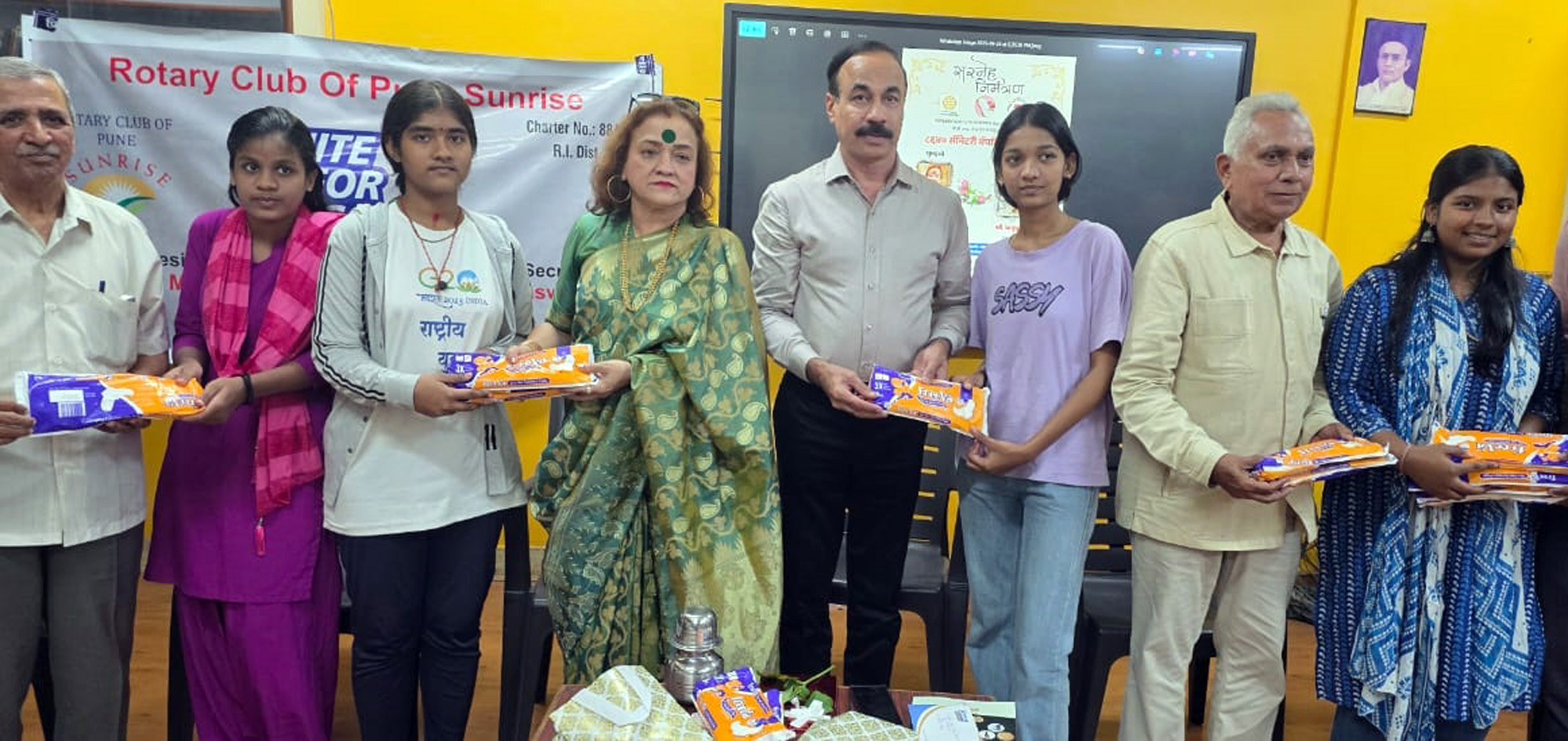 Pune: On the occasion of Navratri and Lalita Panchami, Rotary Club of Pune Sunrise donated 9,000 sanitary napkins to 120 adolescent girls from underprivileged communities under Swarupvardhini Sanstha’s Kishori Vikas Project. The contribution will ensure a year-long supply for the girls, along with guidance sessions on menstrual health and hygiene.