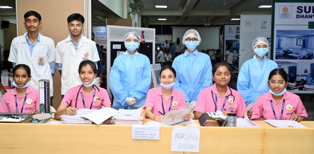 A unique initiative organized under the guidance of Prof. Dr. Sanjay B. Chordiya, Founder President & Chairman, and Mrs. Sushma Chordiya, Vice President, Suryadatta Education Foundation, the mock hospital included multiple OPDs, IPDs, ICU, Radiodiagnosis, Medical departments, emergency drills, basic life support demonstrations, mock drills, and hospital administration processes such as billing, discharge summaries, ambulance services, and medical records.