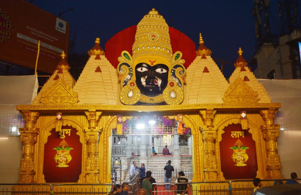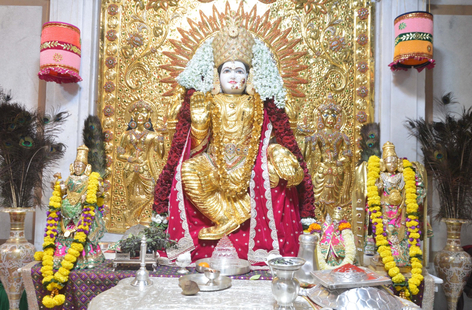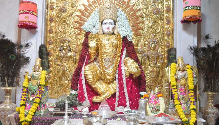 सुवर्णवस्त्रानी सजले सारसबागेसमोरील श्री महालक्ष्मी देवीचे रुपश्री महालक्ष्मी मंदिर सारसबाग पुणे ; लक्ष्मीपूजनाला देवीला १६ किलो सोन्याची साडी