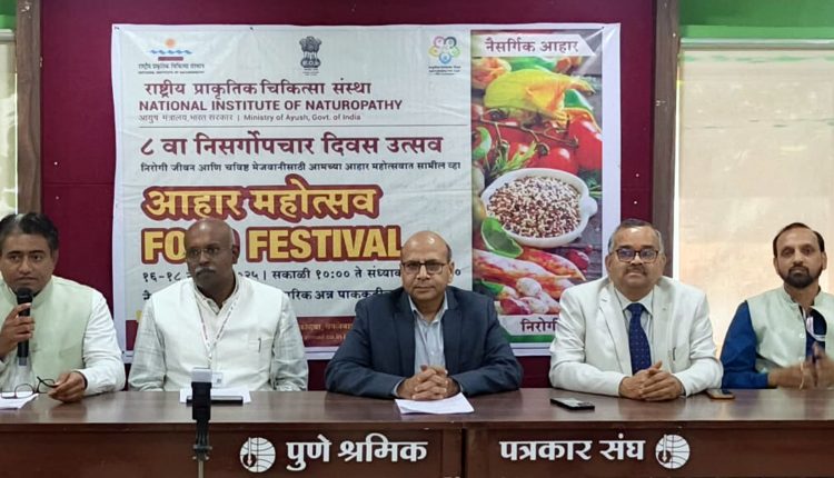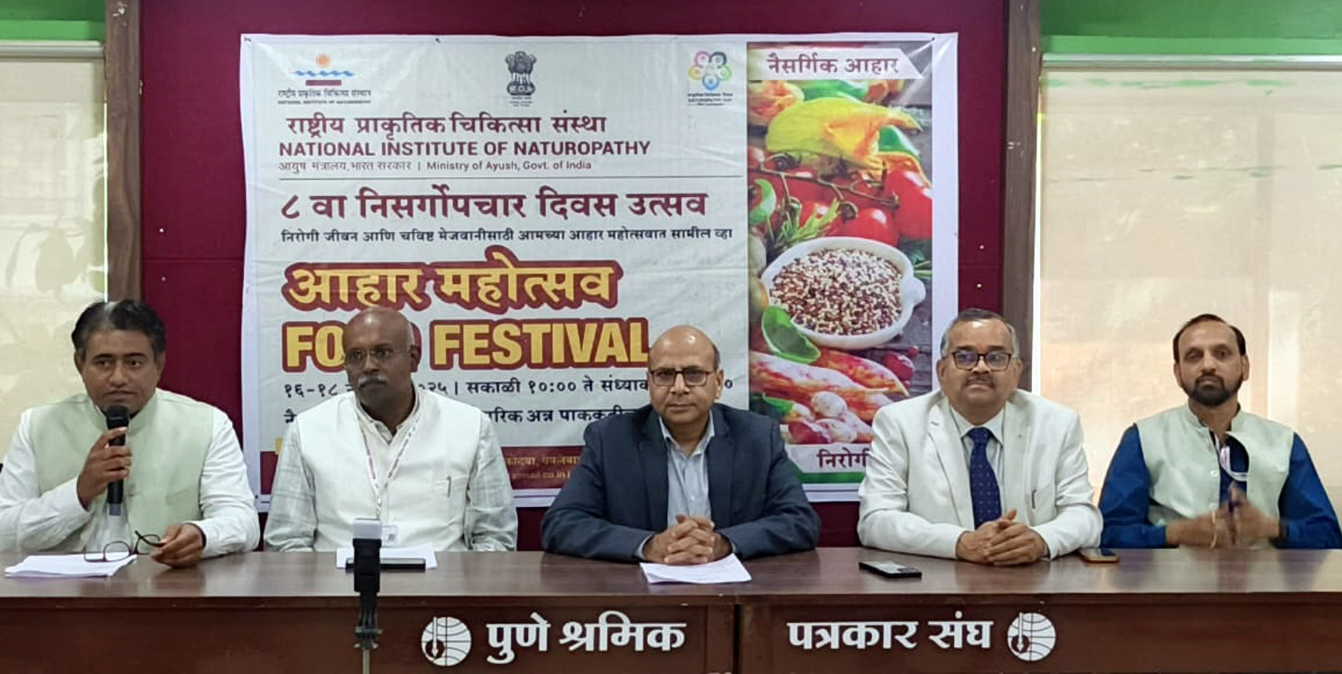 Pune: To promote the philosophy and scientific approach of naturopathy, the National Institute of Naturopathy (NIN) will organise a three-day Natural Food Fair from November 16 to 18 at the Nisarg Gram campus in Yeolewadi. The event is part of the observance of the 8th Naturopathy Day, NIN’s acting director Amarendra Singh announced at a press conference. Present on the occasion were Dr Satyenath, Omprakash Shukla, Mandar Deshpande, and Saurabh Sakalye.