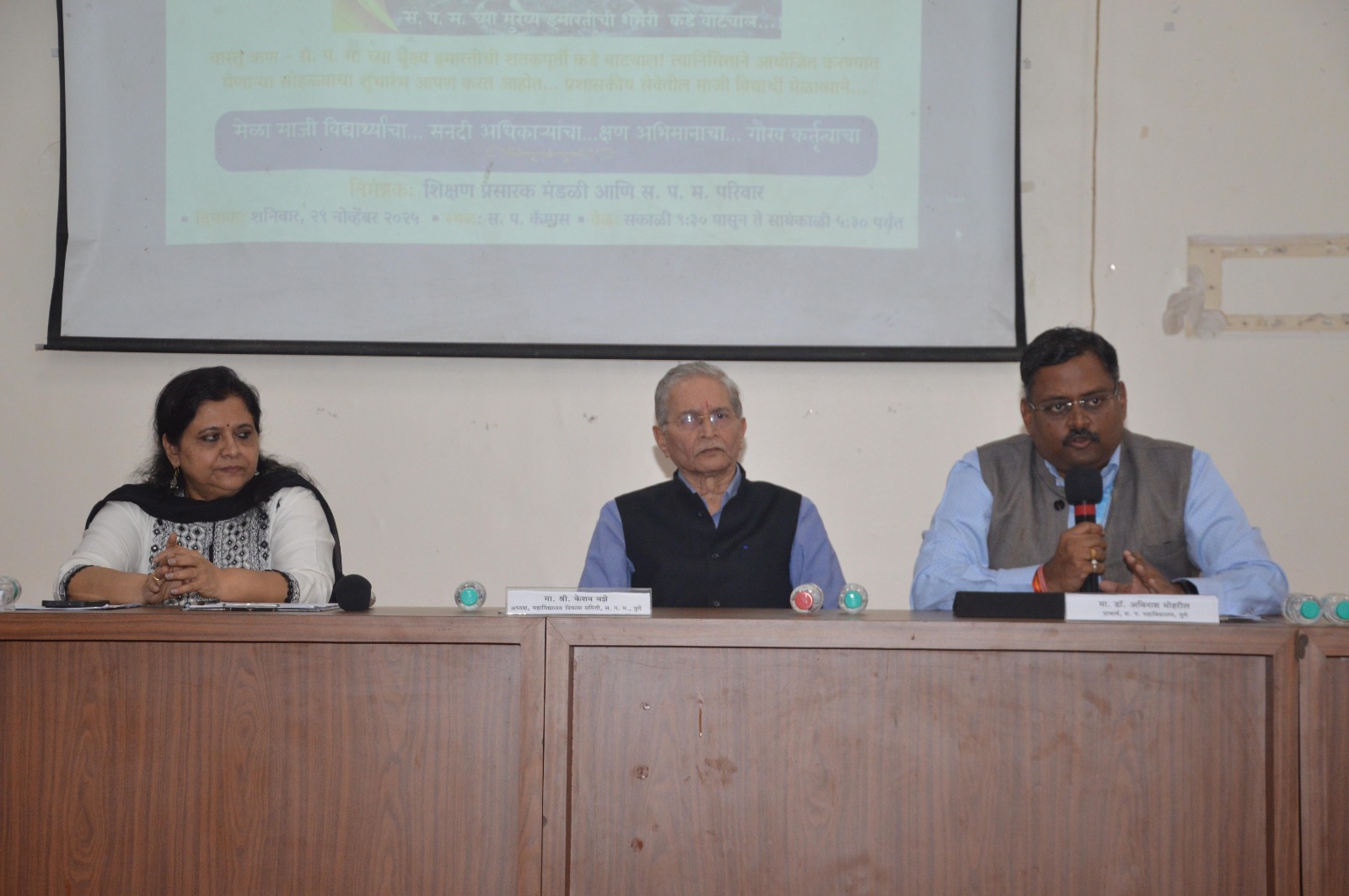 पत्रकार परिषदेला स.प.महाविद्यालय विकास समितीचे अध्यक्ष केशव वझे, महाविद्यालयाचे प्राचार्य डॉ.अविनाश मोहरील आणि डॉ. संज्योत आपटे उपस्थित होते.