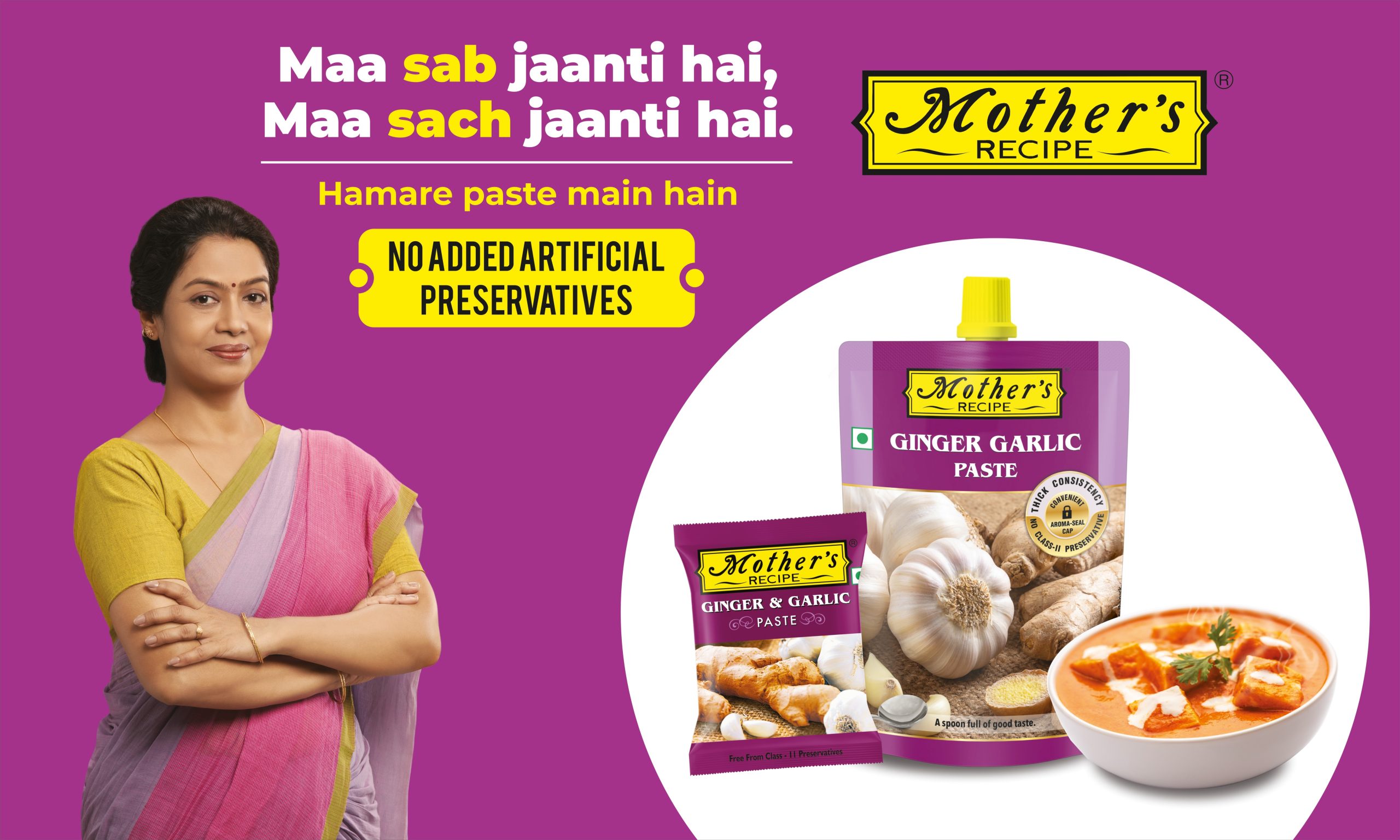 Ginger Garlic Paste is one of Mother’s Recipe’s most loved kitchen staples and is one of the top selling products. This new campaign shines a light on what makes the product special, the care with which it is made, its rich aroma and its ability to bring real, authentic flavour to everyday cooking. Every pack contains only ginger and garlic, with no added artificial preservatives and is prepared in a way that retains freshness, taste and texture. Mother’s Recipe is also the only brand in the category that does not use Sodium Benzoate, and the campaign brings this truth forward with clarity.