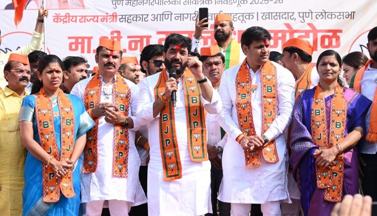 पुणे : पुणे महानगरपालिका निवडणुकीच्या पार्श्वभूमीवर प्रभाग क्रमांक ०९ मध्ये आज पार पडलेली भव्य बाईक रॅली ही केवळ प्रचारापुरती मर्यादित नसून भाजपाच्या निश्चित विजयाची स्पष्ट नांदी असल्याचा ठाम दावा केंद्रीय राज्यमंत्री मा. श्री. मुरलीधर अण्णा मोहोळ यांनी केला. रॅलीला मिळालेला नागरिकांचा उत्स्फूर्त प्रतिसाद, तरुणांचा प्रचंड जोश आणि महिलांचा मोठ्या प्रमाणावरील सहभाग पाहता १६ तारखेला हा प्रभाग भाजपाच्याच पारड्यात ४–० ने जाणार असल्याचा विश्वास त्यांनी व्यक्त केला.रॅलीदरम्यान संपूर्ण प्रभागात उत्साहाचे आणि जल्लोषाचे वातावरण पाहायला मिळाले. ठिकठिकाणी फुलांच्या वर्षावात, घोषणांच्या गजरात आणि कमळाच्या जयघोषात भाजपाच्या चारही उमेदवारांचे नागरिकांनी जाहीर स्वागत केले. या दृश्यांमधून मतदारांनी आधीच आपला कौल दिल्याचे चित्र स्पष्टपणे जाणवत होते.