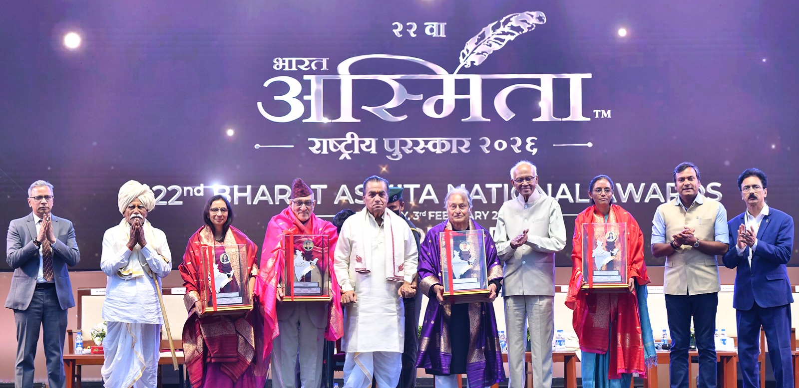 यावेळी आंत्रप्रेन्यूअरशीपसाठी विशेष कार्य केल्याबद्दल प्रा. डॉ. श्रीवर्धनी के. झा यांना ‘भारत अस्मिता आचार्य श्रेष्ठ पुरस्कार’ तामिळनाडू येथील तरुण खासदार ज्योथिमणी सेन्नीमलाई, यांना ‘भारत अस्मिता जन प्रतिनिधी श्रेष्ठ पुरस्कार’ चित्रपट अभिनेता पद्मश्री डॉ. मोहन आगाशे आणि भारतीय शास्त्रीय संगीत जगभर पसरविल्याबद्दल पद्मविभूषण उस्ताद अमजद अली खान यांना ‘भारत अस्मिता जन जागरण श्रेष्ठ पुरस्कार’ देऊन सन्मानित करण्यात आले. प्रत्येकी अडीच लाख रूपये, सन्मानपत्र व स्मृती चिन्ह हे पुरस्काराचे स्वरूप होते.