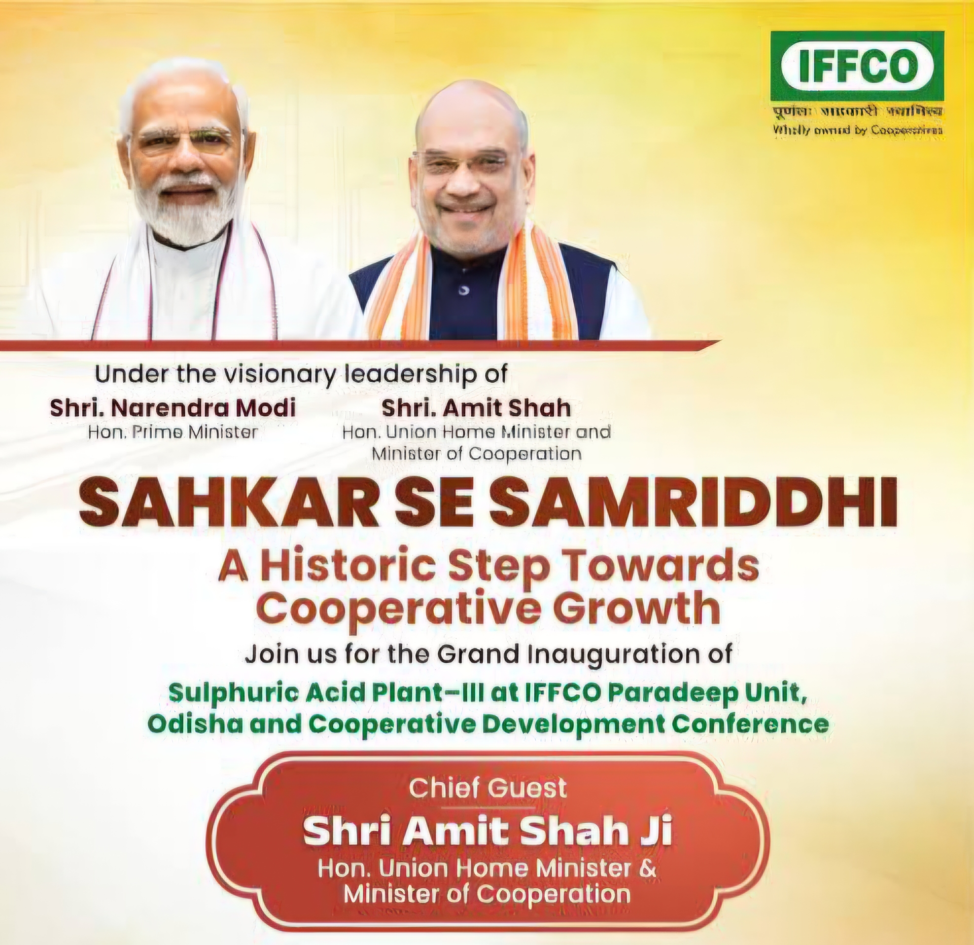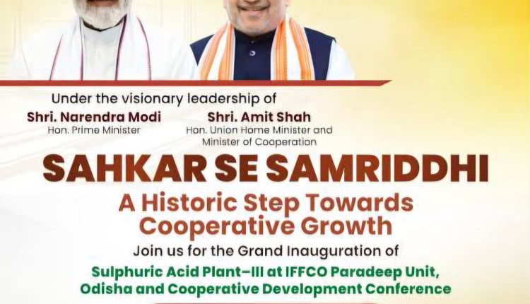 Giving further momentum to the efforts inspired by Hon’ble Prime Minister Shri Narendra Modi’s vision of “Sahkar se Samriddhi”, Union Home and Cooperation Minister Shri Amit Shah during his visit to Odisha on 6 March 2026 will dedicate to the nation the Sulphuric Acid Plant established by IFFCO along with inaugurating and launching several important development projects related to the cooperative sector, dairy development and the Ministry of Home Affairs.