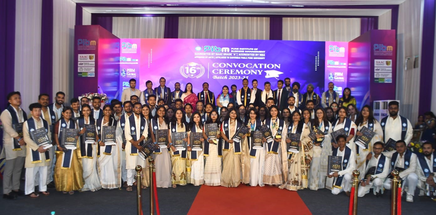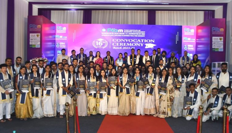 Pune (Voice news service):- The Pune Institute of Business Management (PIBM) held its 16th convocation ceremony on Saturday at it’s campus. Sanjay Seth, Minister of State for Defence, Government of India graced the occasion as the Chief Guest while Raj Bhushan Choudhary, Hon. Minister of State for Jal Shakti of India was present as Guest of Honour along with Mr. Ankit Chugh, Partner, Grant Thornton Bharat LLP,Mr. Manish Jain, Deputy Chief Executive Officer, Choice AMC Private Limited (Choice Mutual Fund)., Dr. Manohar Chaskar, Vice-Chancellor, Swami Ramanand Teerth University, Nanded, Maharashtra, Mr. Kanwal Deep Singh, Managing Director, CEO & Board Member, Mubea India.,Mr. Kavindra Mishra, Managing Director and CEO, Shoppers Stop.