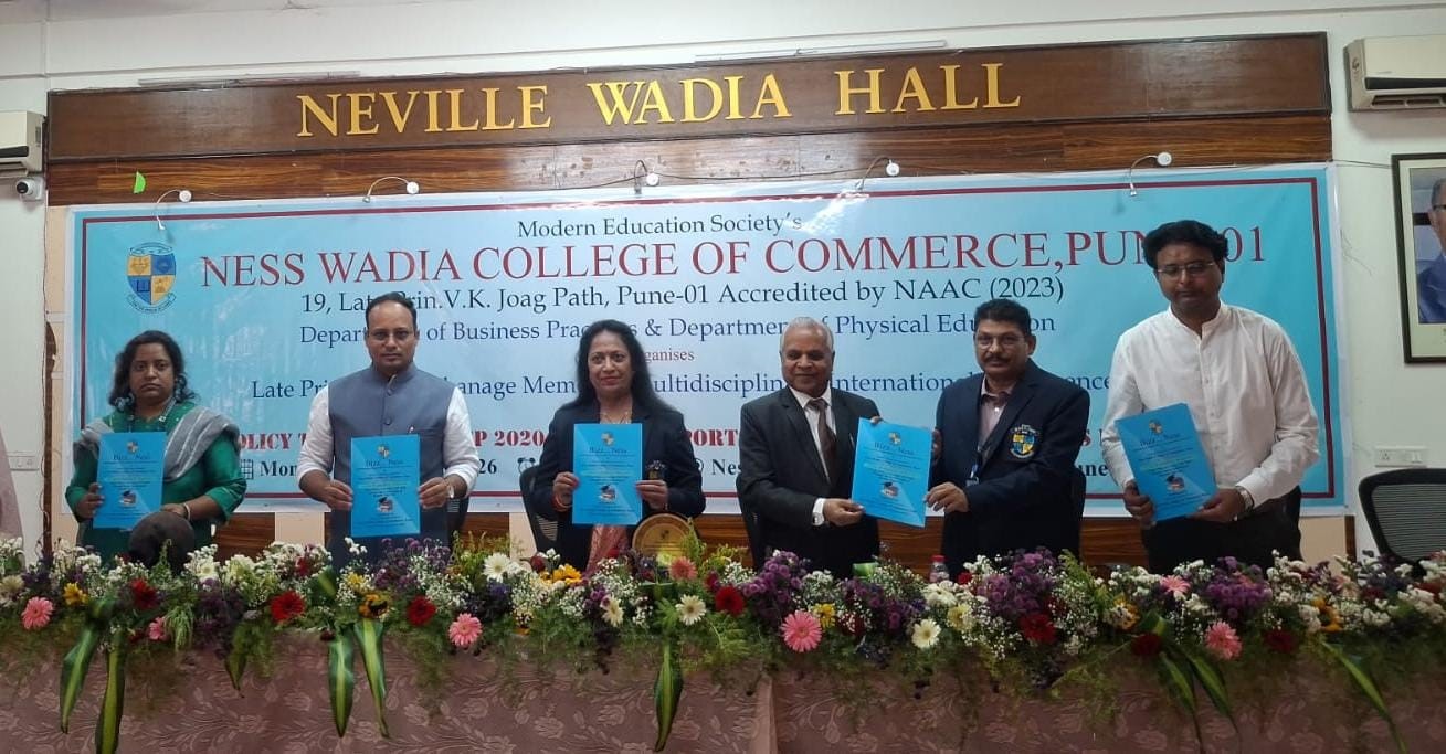 Pune: Ness Wadia College of Commerce recently organised a Multidisciplinary International Conference in memory of the late Principal Dr. B. S. Bhanage. The conference, themed ‘From Policy to Practice – NEP 2020 through Sports, Innovation, and Business,’ was held at the college’s Neville Hall in a hybrid format (both physical and virtual). This year marked the 27th edition of the annual seminar/conference held in honour of the late former Principal Dr. B. S. Bhanage. In her address, Principal Dr. Vrushali Randhir stated that the primary objective of the conference is to promote education, research, and innovation, while providing a platform for professors, researchers, and students to showcase their scholarly work.