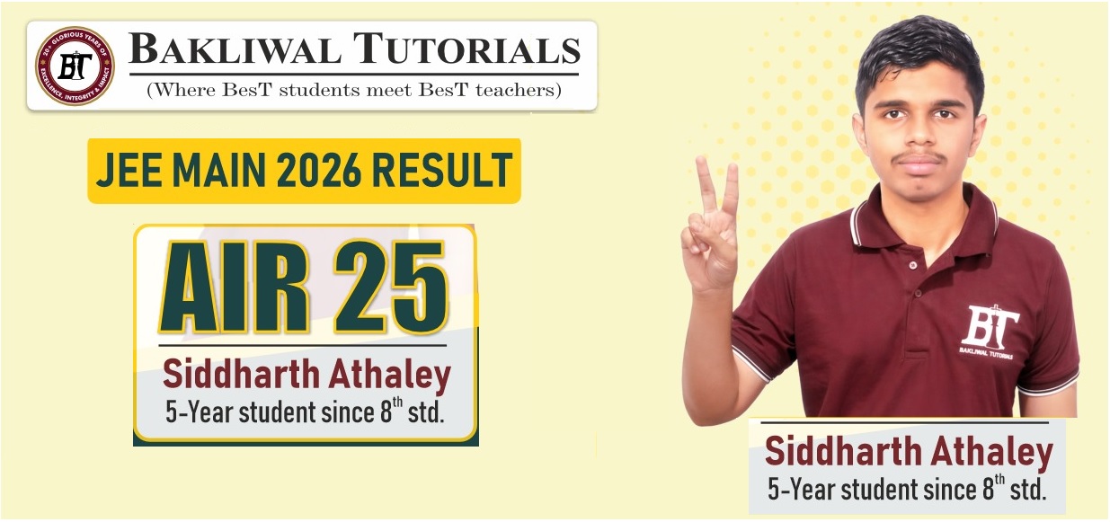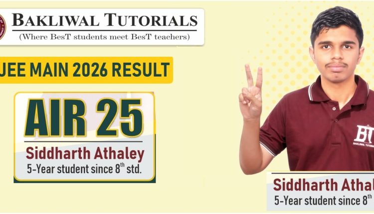 Pune: Bakliwal Tutorials (BT), a renowned coaching institute in Pune, has once again delivered an outstanding performance in the JEE Main results, reinforcing its strong presence in the academic field. In the results announced on the evening of April 20, BT student Siddharth Athalye secured a perfect 100 percentile and clinched the first rank in Pune city. He also achieved an All India Rank (AIR) of 25, bringing pride to both the institute and the city.