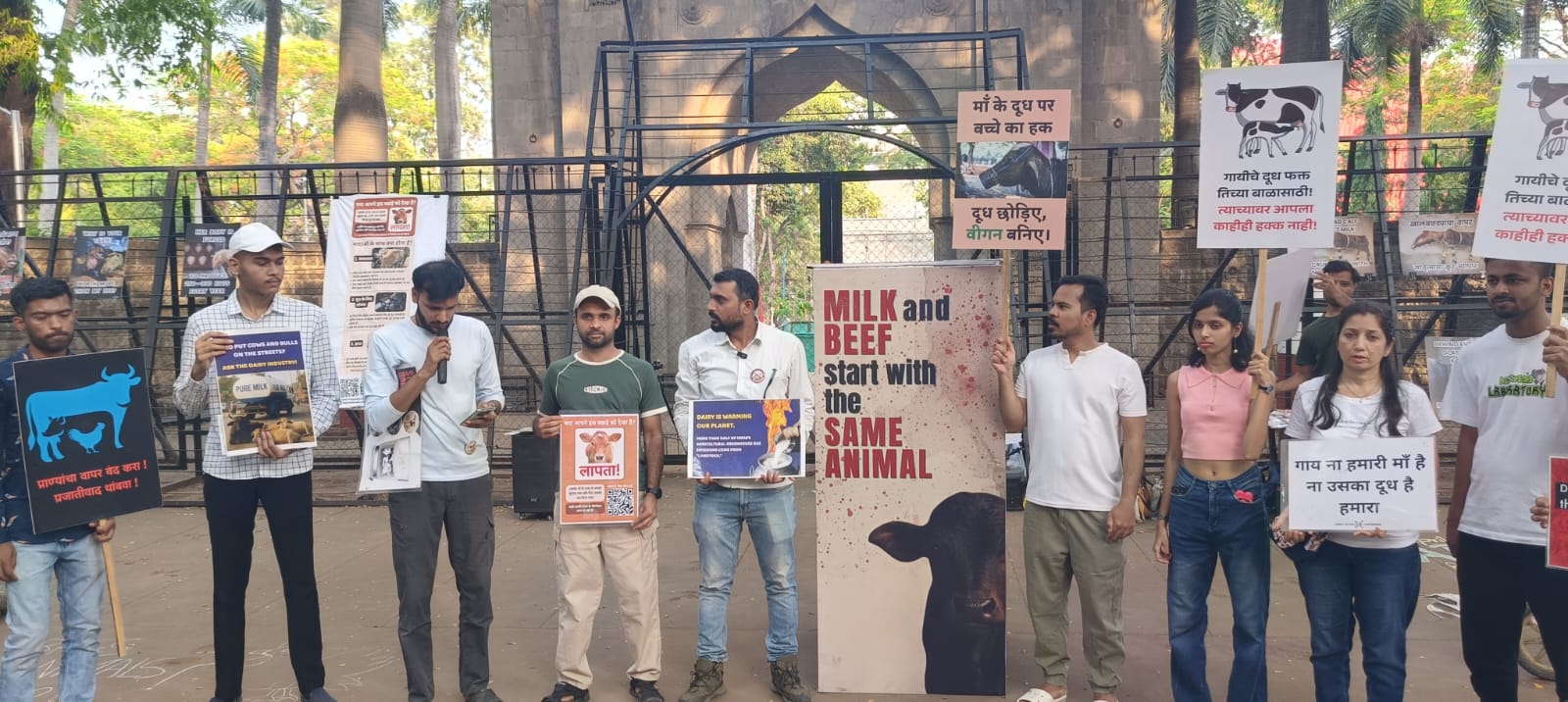 According to information shared during the protest, producing one liter of milk in India requires approximately 1,078 liters of water, posing a serious concern in a water-stressed country. Additionally, methane emissions from livestock were highlighted as a major contributor to global warming.