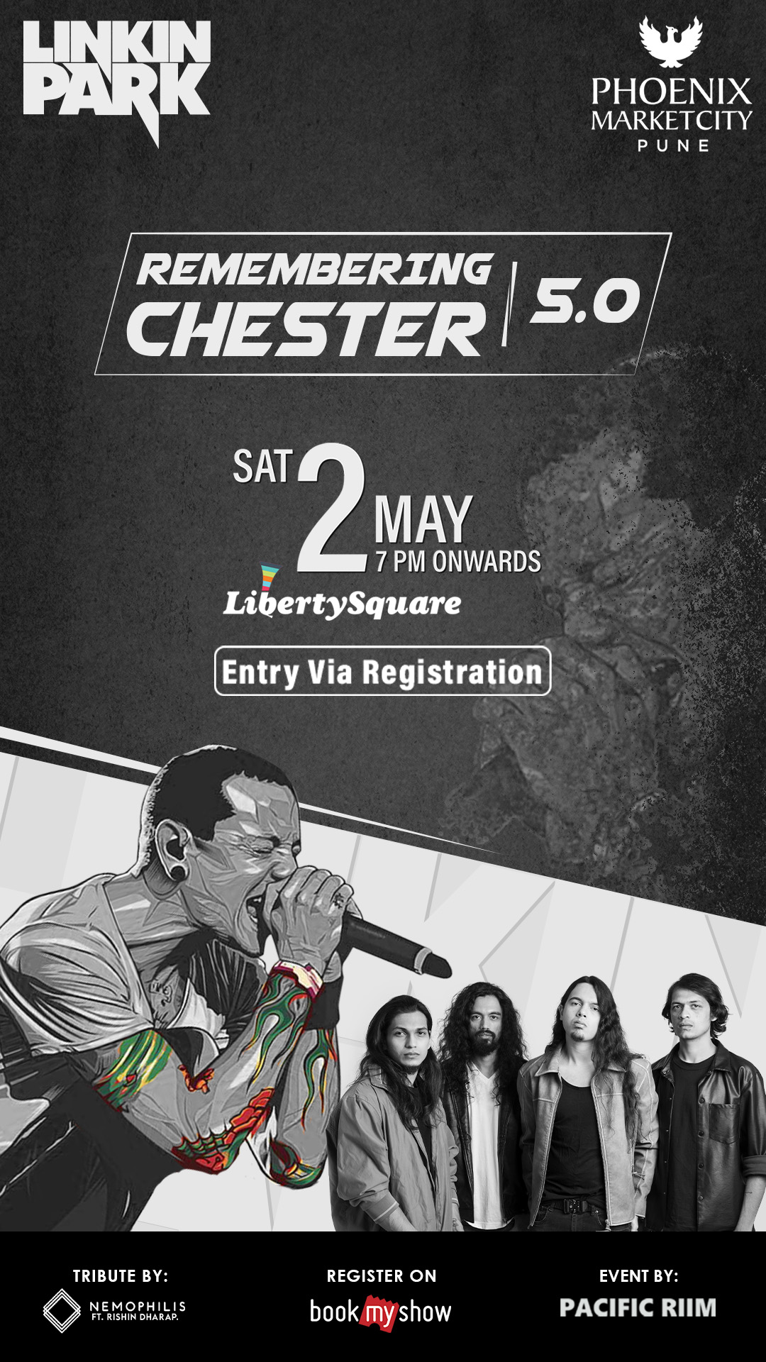 Ticket Price – ₹500 ( https://in.bookmyshow.com/events/remembering-chester-5-0-linkin-park-tribute/ET00484984)