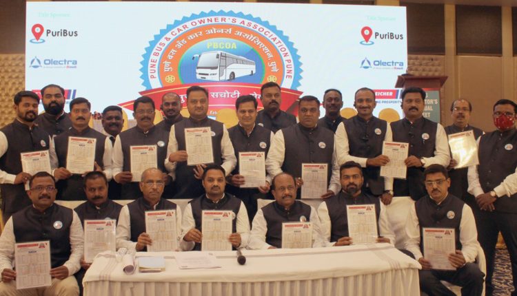 पुणे बस अँड कार ओनर्स असोसिएशनचे राज्यव्यापी अधिवेशन आणि वार्षिक सर्वसाधारण सभा शुक्रवारी झाली. त्यानंतर पत्रकार परिषद घेत असोसिएशनच्या पदाधिकाऱ्यांनी ही माहिती दिली. म्हात्रे पुलाजवळील सिद्धी गार्डन येथे झालेल्या या सभेवेळी असोसिएशनचे सचिव तुषार जगताप, खजिनदार दिनेश सोनवणे, कार्याध्यक्ष किरण देसाई, सल्लागार अनंत पुराणिक, जिल्हा शालेय सुरक्षा समितीचे सचिन पंचमुख आदी उपस्थित होते. राज्यभरातून जवळपास ५००-६०० बस आणि कार मालक या अधिवेशनासाठी उपस्थित होते.