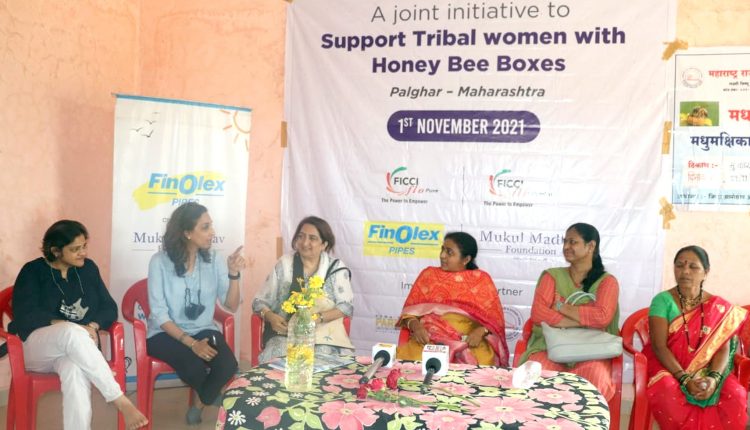 Pune (P&V news service):- Finolex Industries & its CSR partner Mukul Madhav Foundation supported tribal women in Mokhada of Palghar district with Honey Bee project. Motive of this project is to develop entrepreneurship in women’s. Along with, FIL/MMF other like-minded organizations including FICCI FLO Pune and Mumbai Chapter, Rotary SOBO Mumbai come forward to support this initiative to make tribal women independent.