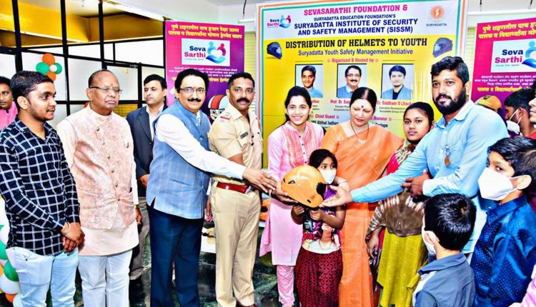 सूर्यदत्ता इन्स्टिट्यूट ऑफ सिक्युरिटी ॲन्ड सेफ्टी मॅनेजमेंट, सेवा सारथी फाऊंडेशनच्या वतीने मोफत ६०० हेल्मेट वाटप