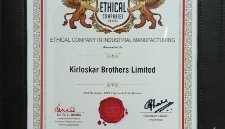 Kirloskar Brothers Limited wins ‘India’s Most Ethical Company’ Award