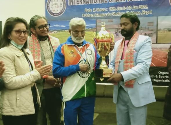 In the recent International Yoga Championship competition held in Pokhara, Dr. Moosele was awarded First prize in the age group of 60 to 70 years. In the same competition, four students of his Siddhivinayak Yoga Prasar Kendra located in Karvenagar, Shankar Awale (age above 70), Rekha Verma (50 to 60 years), Santosh Verma (50 to 60 years) and Bhargavi Khotale (13 to 20 years) also secured first place.