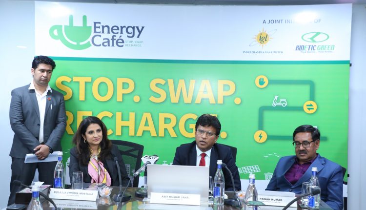 Pune (P&V News Service): Indraprastha Gas Limited (IGL), India’s largest CNG distribution company, and Kinetic Green, a Pune based leading electric vehicle manufacturer, launched their first “Energy Café”- a battery swapping station designed under a strategic collaboration aimed at revolutionizing electric vehicle industry in India. Under the alliance, IGL and Kinetic will roll out a deep network of Battery swapping stations, starting with the Delhi region, where a range of electric three wheelers and electric two wheelers can avail battery swapping facility.