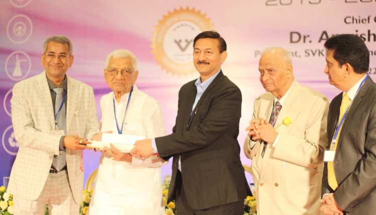 This scientific award was given away at a special function organised at Vile Parle Mumbai at hands of Prof. M.M Sharma, Former Director ICT (UDCT), Mumbai and Chairman Board of Advisors, VASVIK, Dr. Mohanbhai Patel, Chairman, Board of Directors, VASVIK, Mumbai and Dr. Amrishbhai Patel Chancellor, NMIMS University, Mumbai. This award given in 9 categories every year with an aim to promote research and innovation. Till date in last 4 decades more than 450 Scientist and Researchers have been conferred with this award. The award is in the form of citation and prize money of Rs 1,51,000 /-. Prof Dr Milind Pande was felicitated with this prestigious award for his significant contribution to the development of social products in the health care, agriculture and education sectors by creating a mobile platform for villages which helps farmers get updated information about soil condition, weather condition, rainfall and crops.